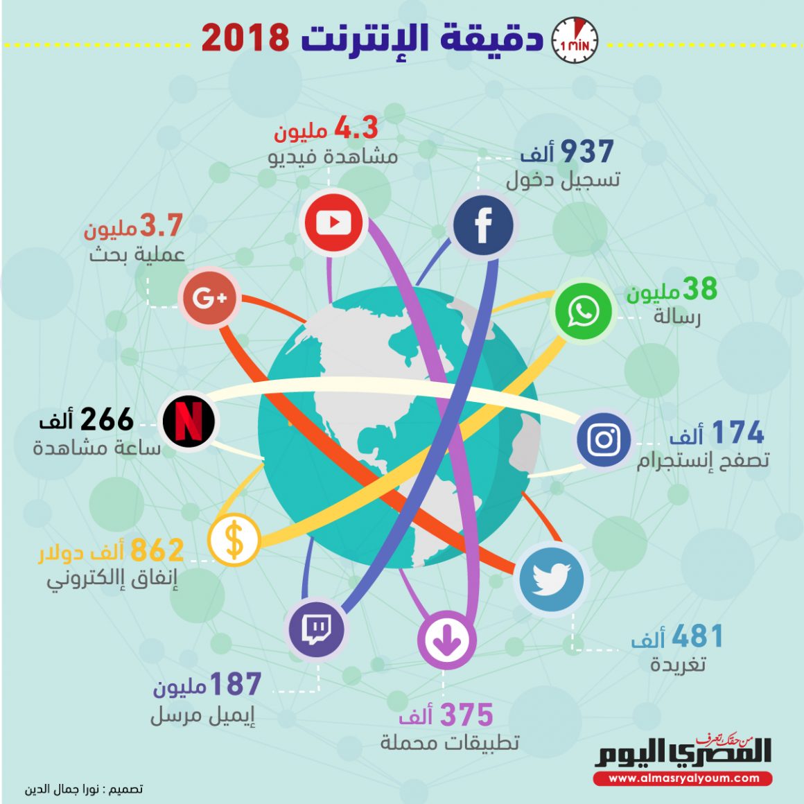 قامت الدراسات العالمية في الآونة الأخيرة بالبحث حول إستخدامات الإنترنت خلال 60 ثانية، حيث أنه مع التطور التكنولوجي انتشر استخدام الانترنت في مجالات كثيرة، ومن هنا اهتمت الدراسات بالبحث عن إجابة لسؤال: «كيف تمر الدقيقة على الإنترنت؟».