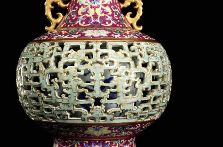 ويتميز الإناء الصيني بأنه غير عادي، حيث يمكن رؤية تصميم الأزهار باللونين الأزرق والأبيض من خلال الجسم الشبيه بالشبكة، وهي عبارة عن «إناء خزفي كمثرى الشكل، يدمج به الحرفيين الألوان والمينا الغربية».