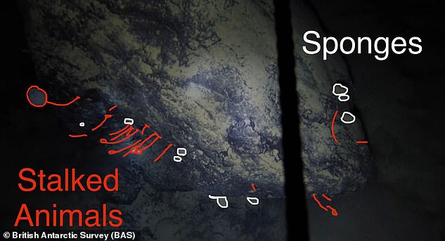 وبحسب مجلة «cosmos» وجد العلماء أشكال الحياة، التي تتكون من إسفنج مختلف وأنواع أخرى غير معروفة، تعيش على صخرة على بعد 260 كيلومترًا من مقدمة الجرف الجليدي وما يصل إلى 1500 كيلومتر من أقرب مصدر لعملية التمثيل الضوئي.