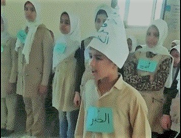 ولم يكتف المعلم بالعرض المسرحي فقط للطلاب لفهم الدرس، بل حتى يتقنوا الدرس ولا يحدث أي نوع من أنواع التشتيت أو عدم الفهم أو التركيز، وضع كل طالب لافتة على صدره تبين الذي يمثله، فظهر أحد الطلاب واضعًا لافتة الخبر، وآخر المبتدأ وهكذا، كما ارتدى الطلاب قبعات من الورق على رأسهم لتبين هويتهم أكثر.