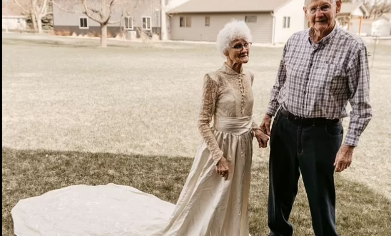 استيقظت «نانسي» في يوم جلسة التصوير، ونفضت الغبار عن ثوبها الدانتيل الأبيض الذي تبلغ قيمته 35 دولارًا، لتستعيد ذكرياتها مع زوجها ميلفين، البالغ من العمر 91 عامًا.