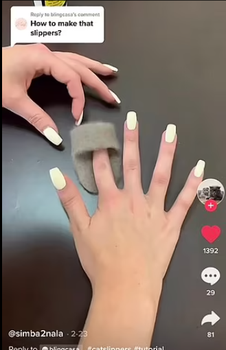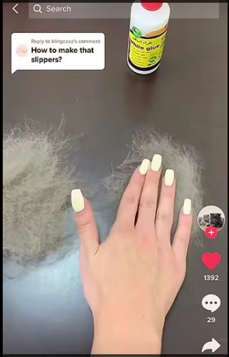 وقد أظهر أحد الفيديوهات المنتشرة عبر تطبيق تيك توك، كيف تم صنع النعال حيث استخدموا فرشاة القفازات لجمع الفراء ووضعه في طبقات. ثم قاموا بقص قطعة قماش الفراء حسب الحجم، ثم قاموا بطيها على شكل شبشب وثبتوها بالغراء.