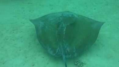 علقت سنارة بفمها وخياشيمها.. إنقاذ سمكة «الراي» في عمق البحر بالغردقة (صور)