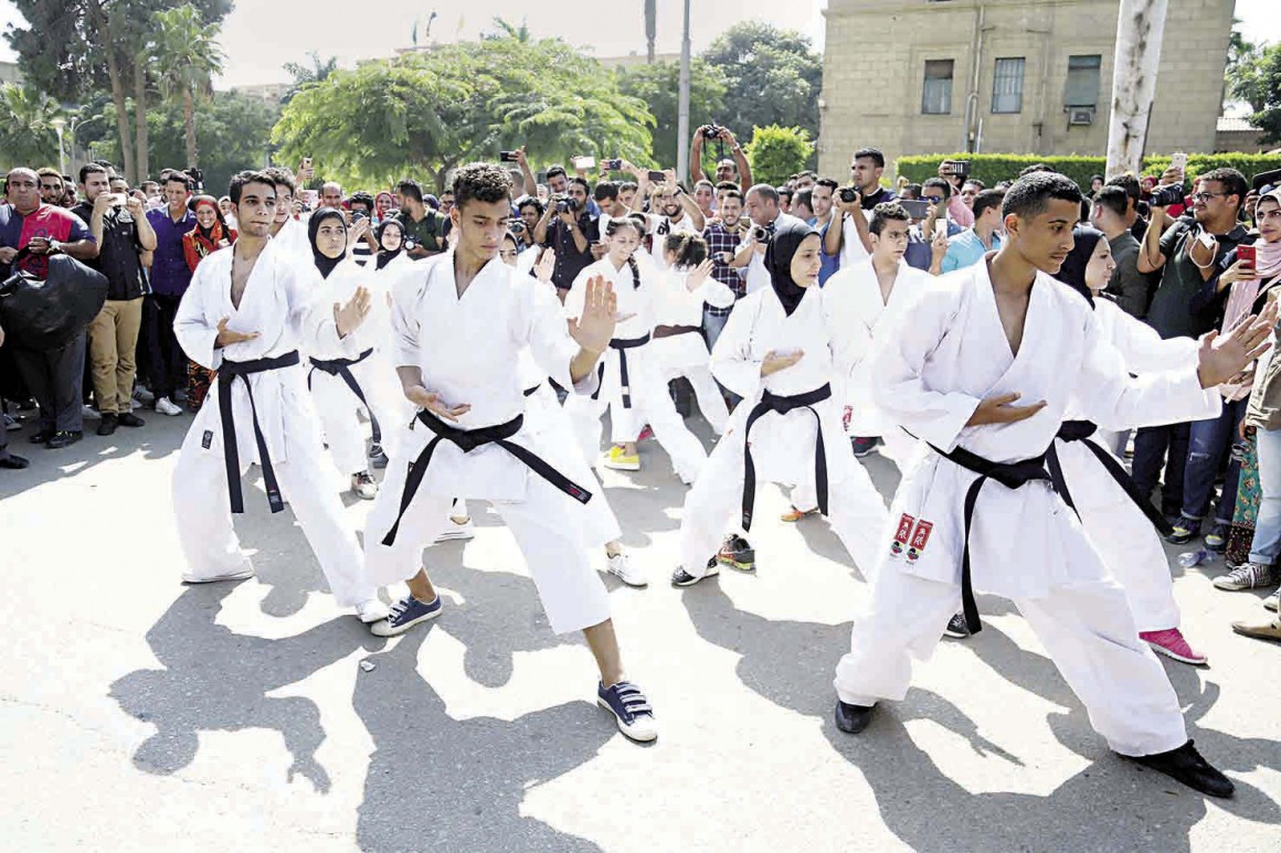وعلى أعتاب الجامعة وقفت الأسر الطلابية تستقبل الطلاب لتعريف أنفسهم، وجذب الطلاب الجدد للانضمام إليهم، ومن بينهم استقبلت «عشيرة الجوالة»، الطلاب داخل خيمتهم الخاصة، وتقول دينا على، طالبة فى الصف الثالث بكلية الزراعة: «بنعرض اللوحات والخامات الخشبية كنوع من أنواع الدعاية للأنشطة بتاعتنا»، وعلى بعد 10 أمتار وقفت فرقة الإنشاد الدينى التابعة لنقابة الإنشاد الدينى فى مكانها من الساعة التاسعة صباحاً فى إنشاد متواصل، ويقول زكريا سيف، أحد أعضاء الفريق: «إحنا جايين باسم النقابة نستقبل الطلاب بالأناشيد، ودى أول مرة نييجى، وكمان هنشرح للطلاب النظام عشان لو أى حد حابب ينضم».