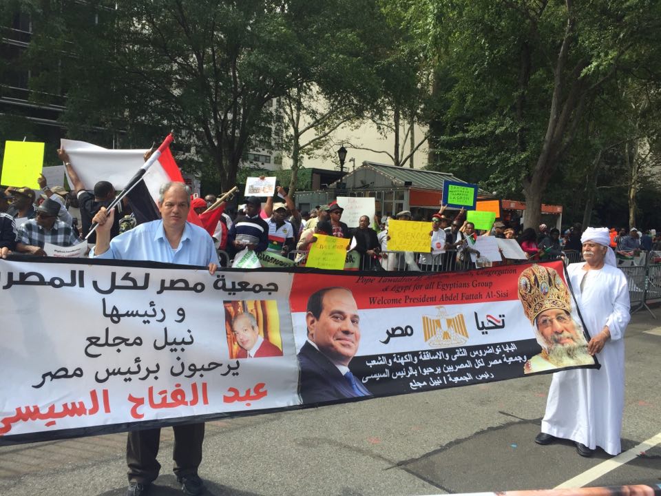 بجلبابه وزيه الصعيدي، وقف المقدس عيد فلتس رافعًا صورة الرئيس عبدالفتاح السيسي لتحيته أمام الأمم المتحدة، وقال «فلتس» لـ«المصري لايت»: «ابني يعيش في الولايات المتحدة الأمريكية وتحديدًا في مدينة بايون بولاية نيوجيرسي الأمريكية، وجئت زيارة له قادمًا من القوصية بمحافظة أسيوط، ولكني أشتاق للعودة سريعًا إلى مصر أم الدنيا» كما يراها، مؤكدًا أنه يسعى لتقديم موعد عودته.