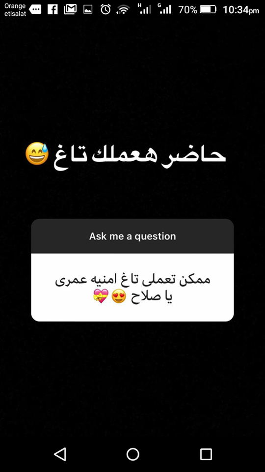 نشر اللاعب المصري محمد صلاح، لاعب نادي ليفربول الإنجليزي، ومنتخب مصر، على حسابه الشخصي على «إنستجرام» بعض الأسئلة التي وجهها له الجمهور عبر الحساب، بعد الإجابة عليها.