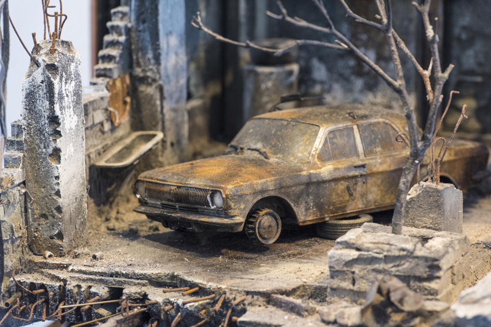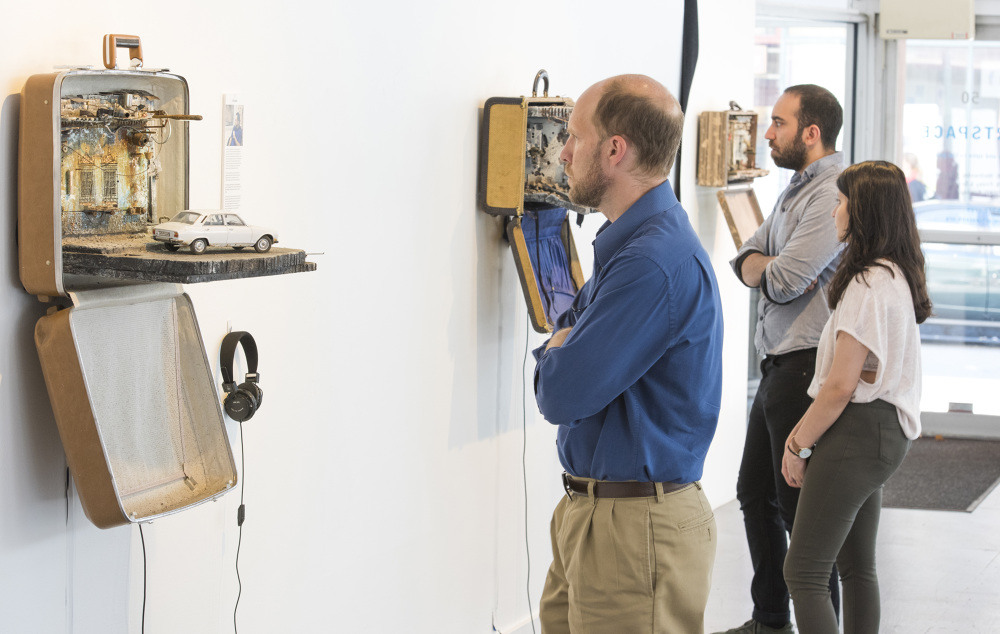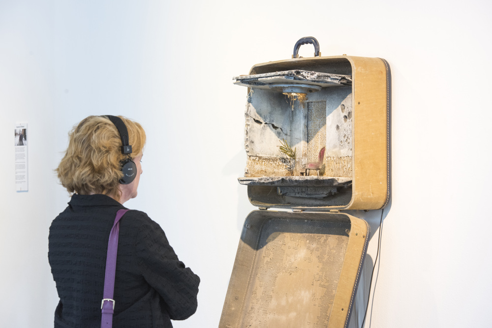 وتعبيرًا عما سبق، صمم الفنان السورى محمد حافظ منازل ومبانى داخل حقائب أمتعة، لعكس المناظر الطبيعية التى عانت من ويلات الحرب، مع إمكانية المستمع من الإنصات إلى قصص أناس حقيقيين من خلال سماعات الرأس، وهو العمل الذى استقبلته عدد من المتاحف بالولايات المتحدة الأمريكية.