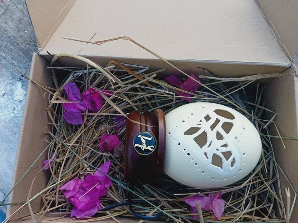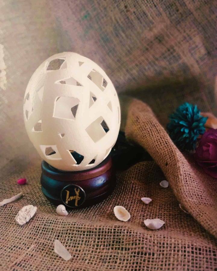 إبداع «هدير» على بيض النعام ينتج عنه رسم بورتريهات وأعمال هندسية، بجانب الحفر فى بعضها بغرض صنع أباجورة، وأحيانًا تضعه على مسندٍ نحاسى وخشبى، خاصةً أن قشر بيض النعام أقوى 20 مرة من بيض الدجاج العادى.