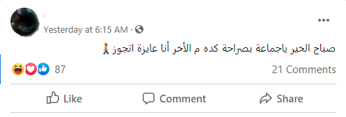 وأردفت الطالبة في تعليقها التي حاولت فيه شرح غرضها من منشورها: «أنا فعلًا نفسي اتجوز ويكون عندي بيت وأسرة، ناهيك عن أن البوست للهزار فقط لا غير حتى لو ناتج عن حاجة أنا فعلًا عايزاها، وأظن ده لا يُقلل من حيائي في شيء بالعكس أنا لسه مُحتفظة بحيائي ومكانتي لأني مرحتش قلت لحد بشكل مباشر أنا عايزه اتجوزك».