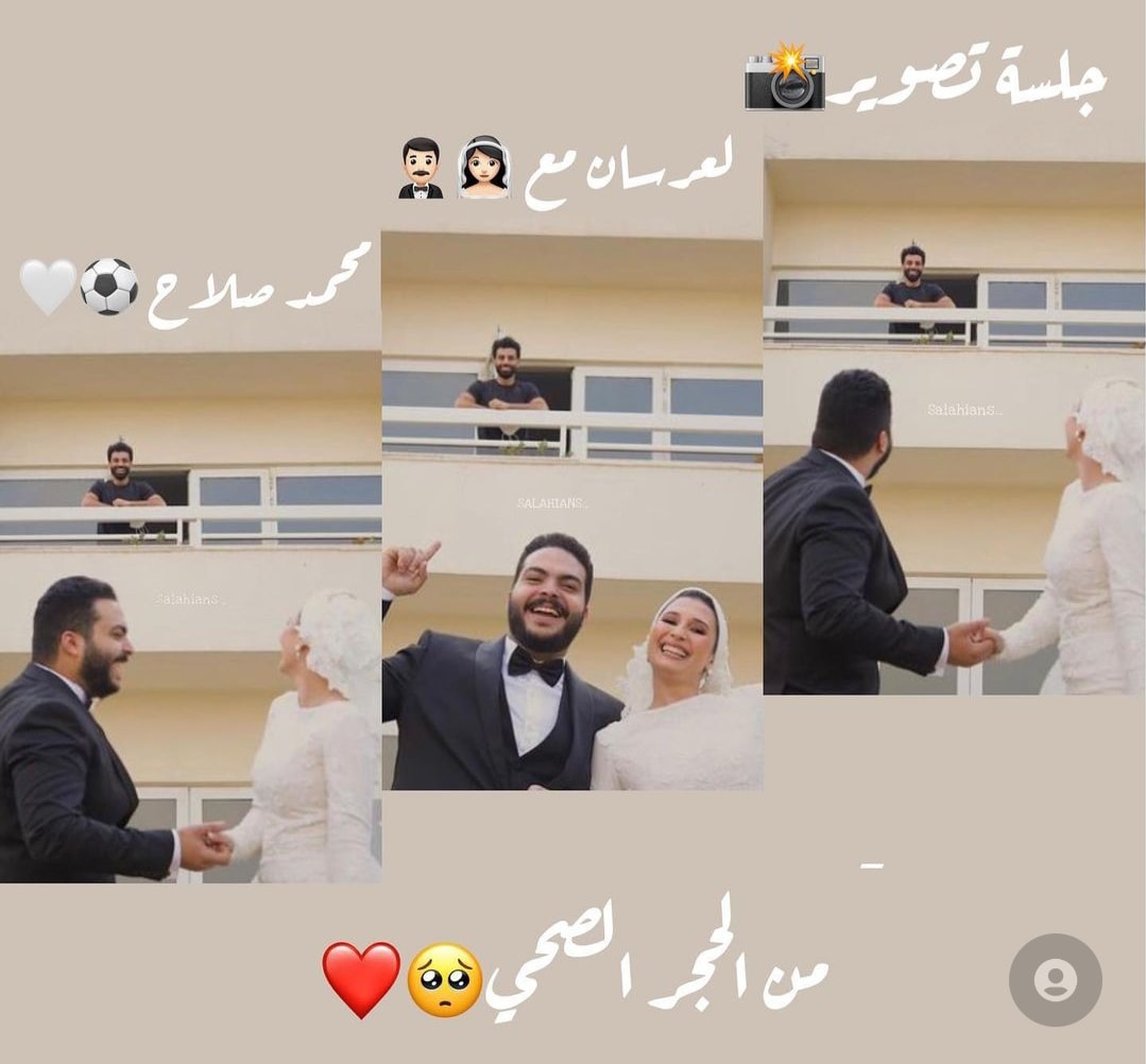 ◙| شاهد | محمد صلاح في ظهور خاص من داخل العزل مع عروسين: جلسة تصوير