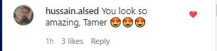وتفاعل معه عدد كبير من جمهوره ومحبيه من رواد مواقع التواصل الاجتماعي، وجاءت التعليقات كالآتي: «ولع الدنيا يا تيمو، You look so amazing, Tamer».