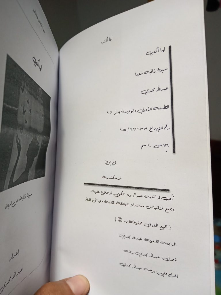 ولأن الكتاب «منها وإليها فقط» حسب المقدمة، لم يقدم «عبدالله» هذا الكتاب إلى العامة من خلال دار للنشر، بل تعلم طريقة تنسيق الكتب، ثم صمم بنفسه الغلاف من خلال خبرته المقبولة في استعمال برنامج «فوتو شوب»، قبل أن يتوجه إلى إحدى المكتبات التي تكفلت بالطباعة: «كل كاتب بيبقى عاوز الناس تقراله.. لكن أنا عايز هي بس اللي تقرا الكتاب ده».