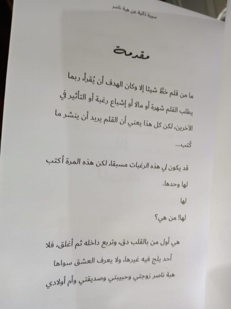 هدية «عبدالله» إلى زوجته، السيدة هبة ناصر، تمثلت في تأليف كتاب عنها «يحوي الكلمات التي تستحقها» وفق قوله تحت عنوان «لها أكتب»، مكون من 76 صفحة، يحمل صورتها منفردة على الغلاف، فهي حسب كلماته «أول من بالقلب دق، وتربع داخله ثم أغلق، فلا أحد يلج فيه غيرها، ولا يعرف العشق سواها».