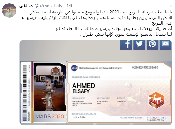 وبالفعل، سارع ملايين الأشخاص حول العالم إلى تسجيل أسمائهم، وكانت مصر وقتها تحتل ترتيبًا متقدمًا بين الدول، بواقع 137 ألف و173 اسمًا، وهو بطبيعة الحال ما ازداد يومًا تلو الآخر حتى أُغلق باب التسجيل، مع العلم أن كل من دون اسمه تظهر له ما يشبه بتذكرة سفر مدون عليه الاسم.