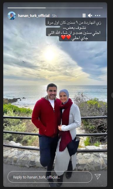 ونشرت «ترك»، صورة تجمعها مع زوجها، وذلك عبر خاصية القصص القصيرة عبر حسابها الرسمي على موقع «إنستجرام»، وعلقت عليها قائلة: «زي النهاردة من 9 سنين كان أول مرة نشوف بعض، أحلى سنين عدت وإن شاء الله اللي جي أحلى».