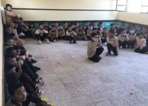 تداول رواد مواقع التواصل الاجتماعي عبر فيسبوك صورة بعنوان “احترازية دي تبقي خالتك”، والتي تشير إلى تكدس العديد من التلاميذ في فناء المدرسة.