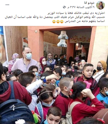 تداول رواد مواقع التواصل الاجتماعي عبر فيسبوك صورة بعنوان “احترازية دي تبقي خالتك”، والتي تشير إلى تكدس العديد من التلاميذ في فناء المدرسة.