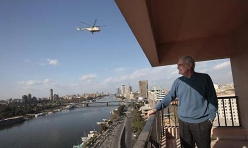 «الشريف» يشاهد القاهرة من أعلى خلال تصوير طائرة هليكوبتر تابعة للجيش للمتظاهرين بميدان التحرير في عام 2011.