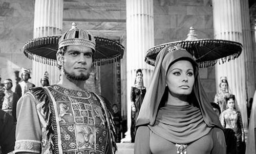 «الشريف» مع الفنانة الإيطالية، صوفيا لورين، في فيلم The Fall of the Roman Empire أو «سقوط الإمبراطورية الرومانية» في عام 1964.