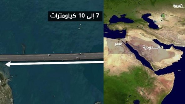11. ومن المقرر أن يمر جسر الملك سلمان من منطقة تبوك إلى جزيرة صنافير ثم جزيرة تيران ثم إلى منطقة النبق، أقرب نقطة في سيناء.