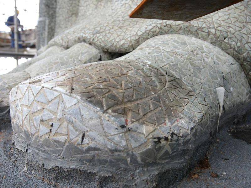 ولكن عندما تقترب، يمكنك أن ترى أن التمثال العملاق مغطى بأكثر من 6 ملايين من البلاط من الحجر الأملس الثلاثي الصغير، وفقًا لـ Mental Floss.