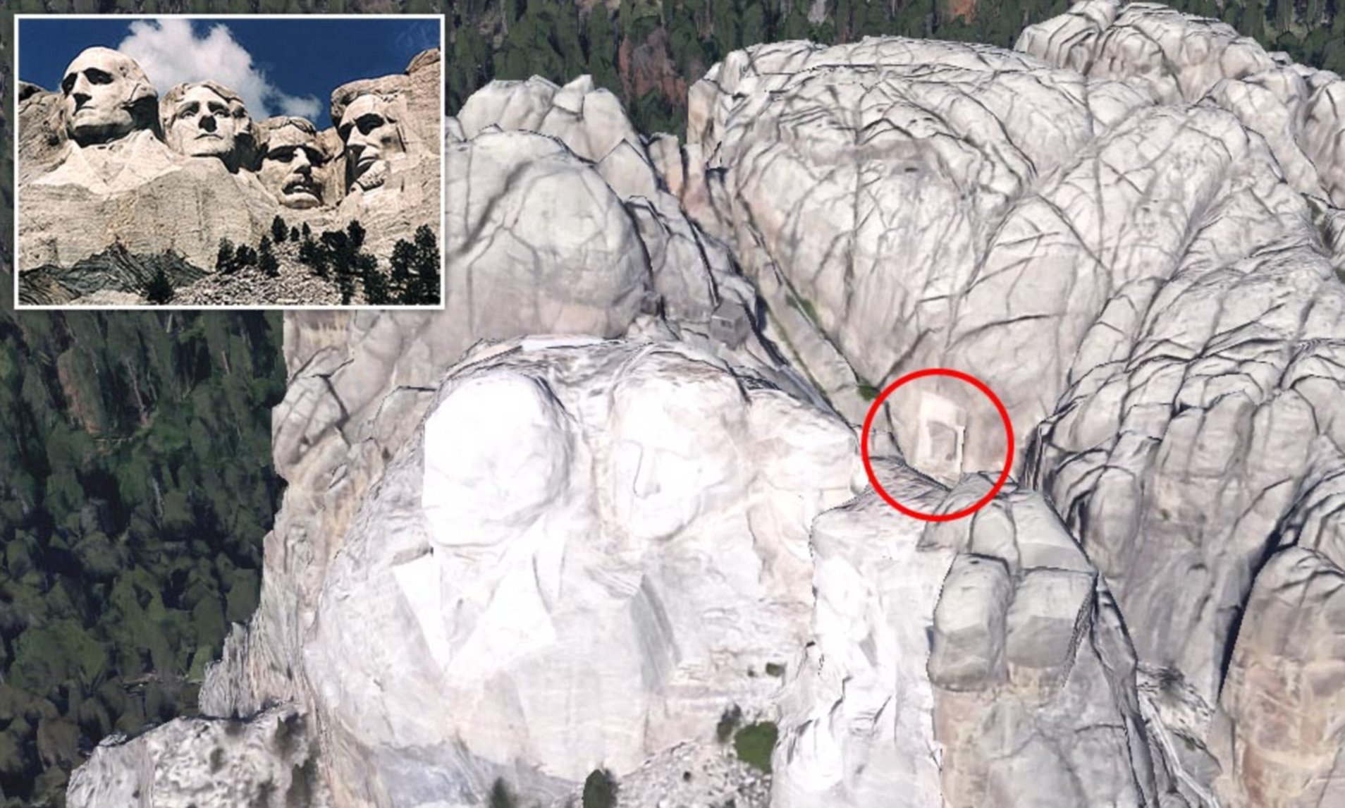 يحتوي جبل راشمور في ساوث داكوتا، على غرفة مخفية، تقع خلف خط شعر أبراهام لنكولن، حسب National Park Service (NPS)، يشبه مدخل البوابة المؤدية إلى قبر مصري.