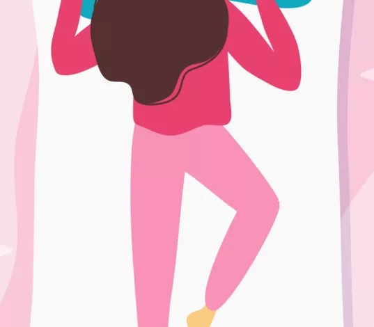 هو أنك تستلقي على جانبك مع ثني ركبتيك نحو صدرك، ملتفتين مثل الطفل.