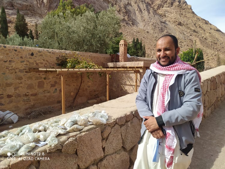 يُعد «الجبالي» البالغ من العمر 35 عامًا، واحدًا من ثلاثة عمال مسؤولين عن فتح وإغلاق أبواب الدير، حيث يتبادلون فيما بينهم حراسة الدير وفتحه وإغلاقه خلال الأسبوع، وجميعهم من أبناء القبيلة، ويقول: «اتعرض علينا نشتغل مع الأجانب ونسافر، لكن بالنسبة لى برفض أى شغل خارج الدير، ومصمم إنى أكمل هنا، لأنى بحس براحة نفسية».