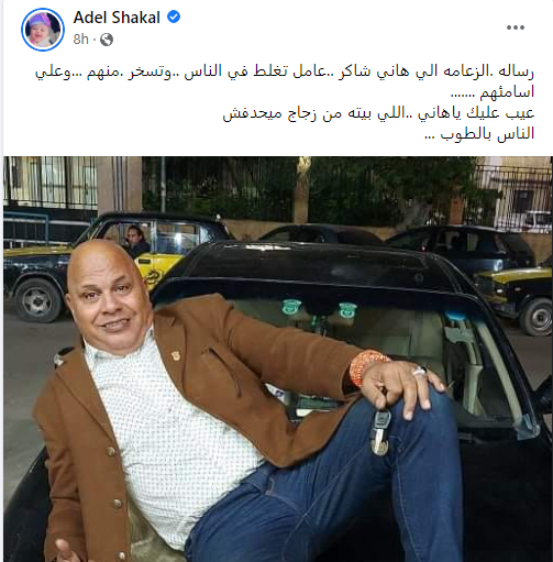 من جانبه، علق المشجع الكروي «عادل شكل» على الفيديو المتداول عبر صفحته الشخصية، وكتب: «رسالة إلى هاني شاكر، عمال تغلط في الناس وتسخر منهم وعلى أسمائهم عيب عليك، اللي بيته من زجاج ميحدفش الناس بالطوب».