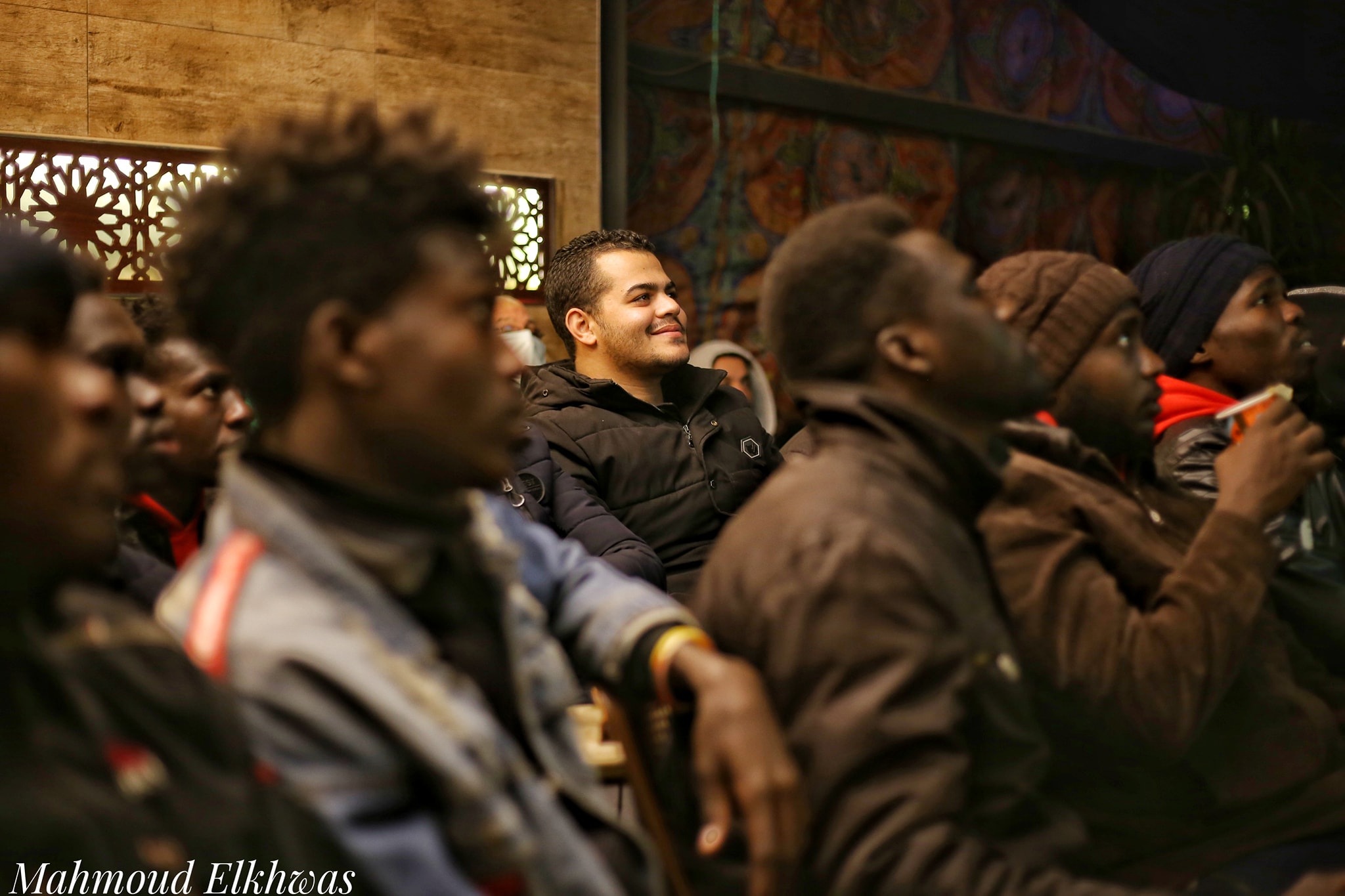 حالة من الترقب بدت على وجوه الحضور، الذين اصطفوا استعدادا لانطلاق المباراة، وأثناء احتساؤهم للمشروبات الساخنة في محاولة للتخفيف من برودة الجو، تفاجأ المشجعين المصريين، بتوافد ما يقرب من 20 مواطنا سودانيا، جلسوا بينهم لمشاهدة مباراة منتخبهم، لتتحول ساحة المقهى إلى مقصورة ملعب مباراة مصغرة.