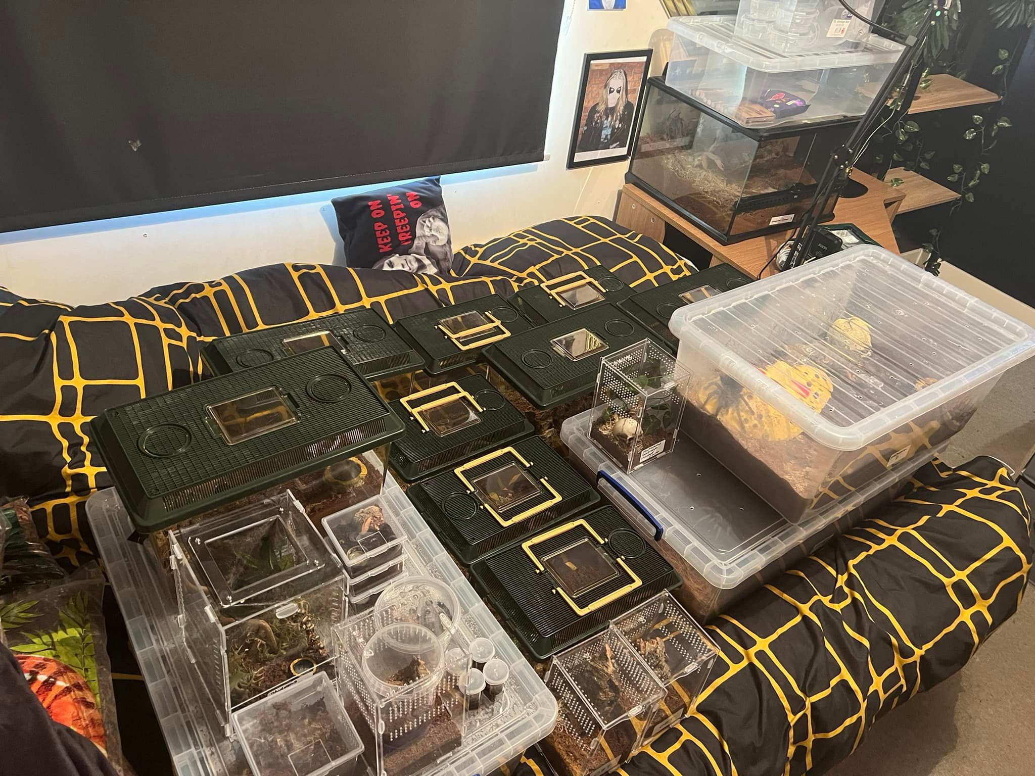 خصص «آرون» غرفة تحتوي على كل شيء لحياة مريحة لهذه الكائنات المقيمة معه في المنزل، حاويات فسيحة وإضاءة وأجهزة تدفئة وما إلى ذلك.